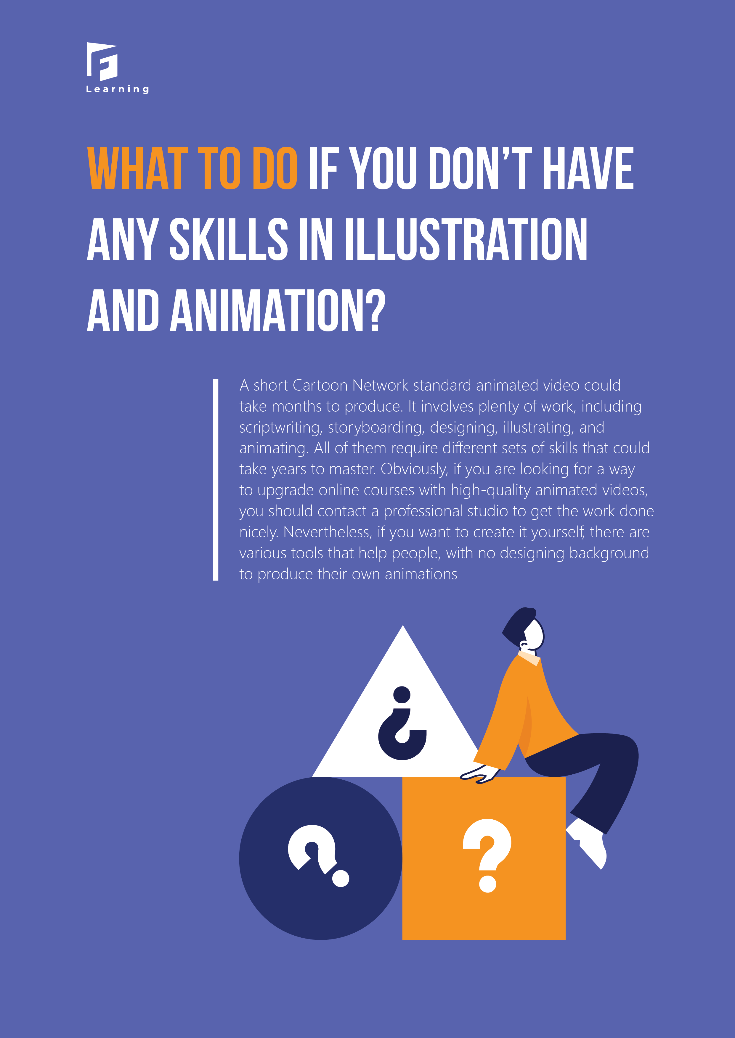 We will guide you through how to make a proper animated video for online courses. You would find information on how to create animations on your own, or what you need to work with your production partner.