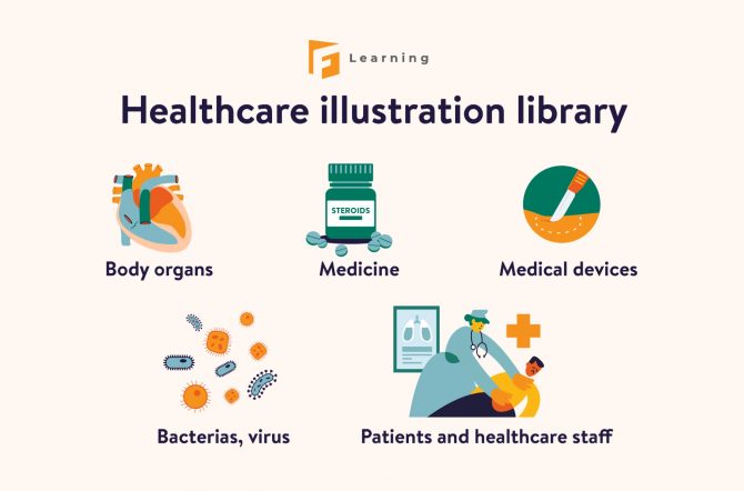 At F.Learning, we have also developed a library with 10,000+ illustrations on healthcare topics such as pharma, organs, health staff, medical devices…. When partnering with healthcare and medical organizations, we realize that it can help save a ton of time as well as medical animation costs. This is because our clients don’t have to pay for the initial design and development.